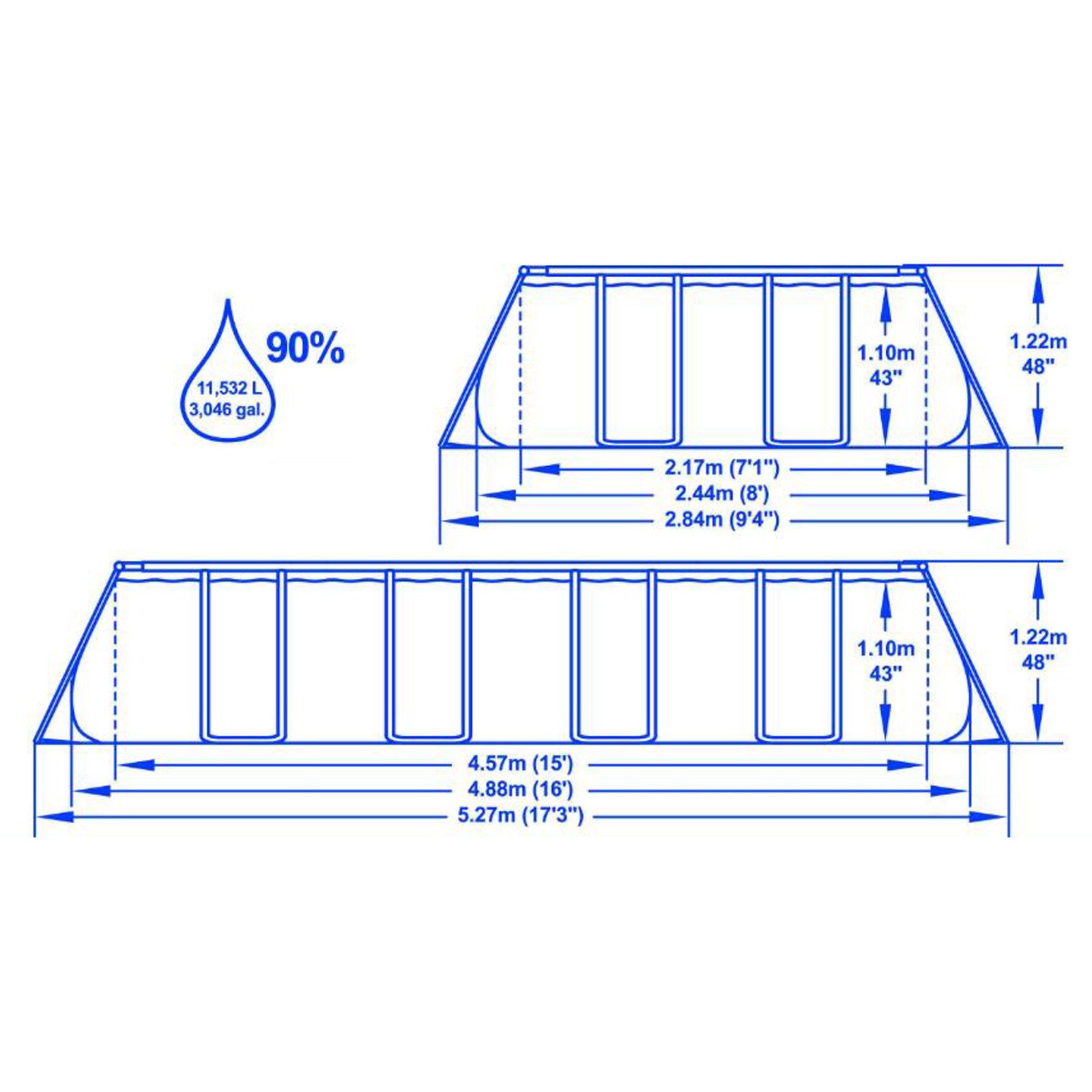 Bestway rammebasseng 488x244x122cm. 11532 liter.