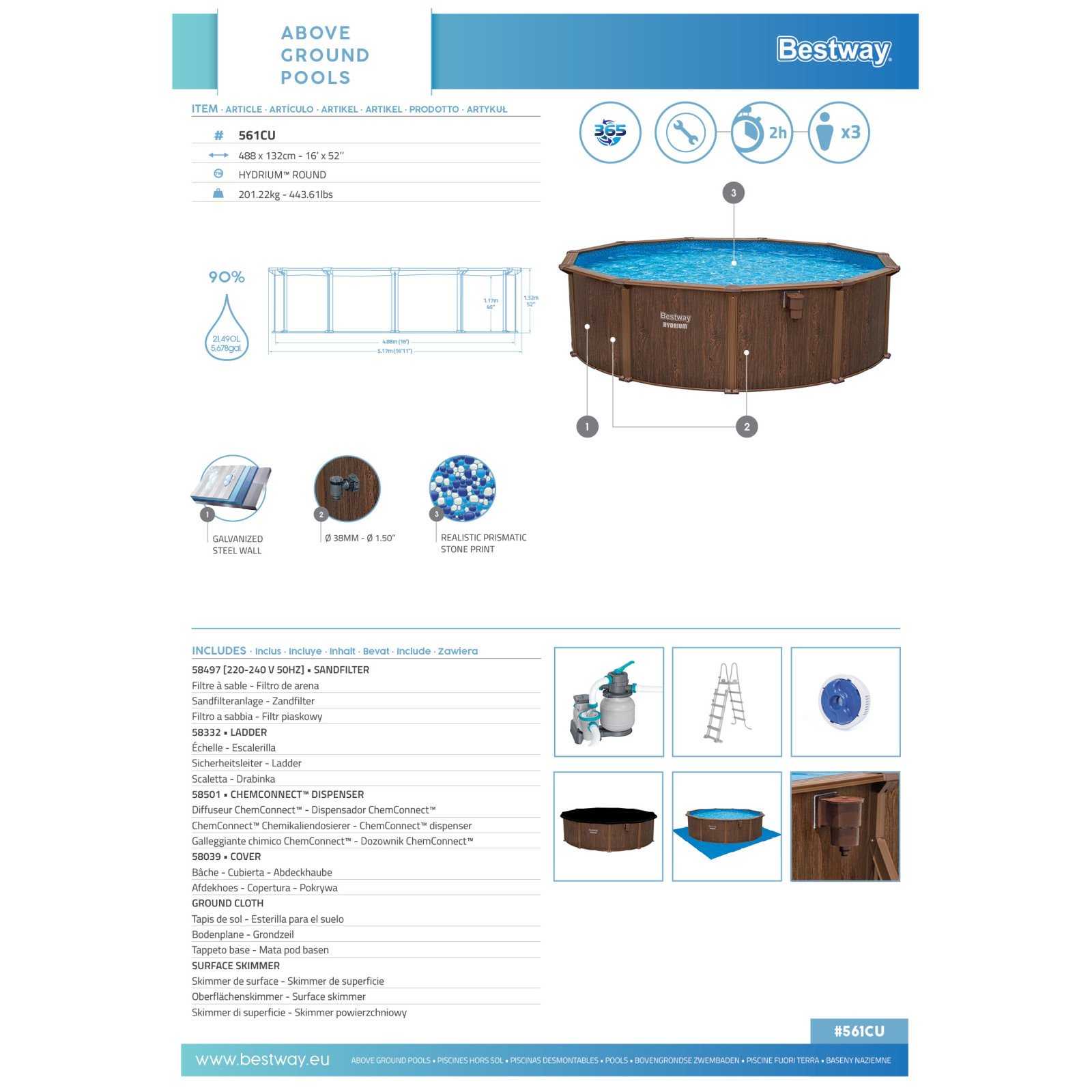 Bestway stålveggbasseng 488x132cm. 21490 liter.
