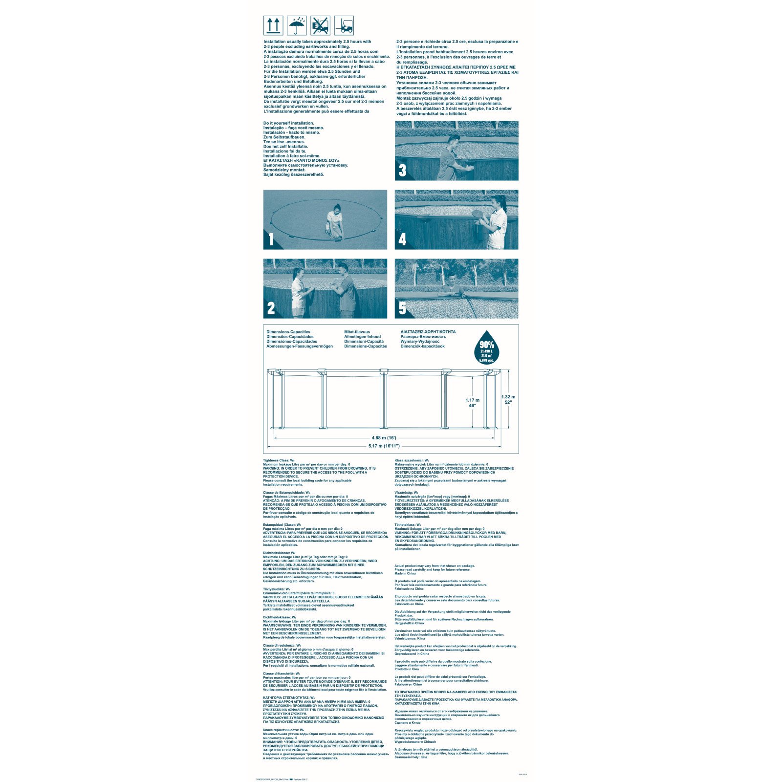Badebassenget er utstyrt med bunnduk for å legge på gresset, og overtrekksduk for å dekke til bassenget når det ikke er i bruk. Du kan også i tillegg bestillle solar varmeduk modell 58253 som vil ligge å flyte på vannet, og varme vannet ved hjelp av solen. Solarduken vil også hjelpe til med å holde på varmen i vannet.