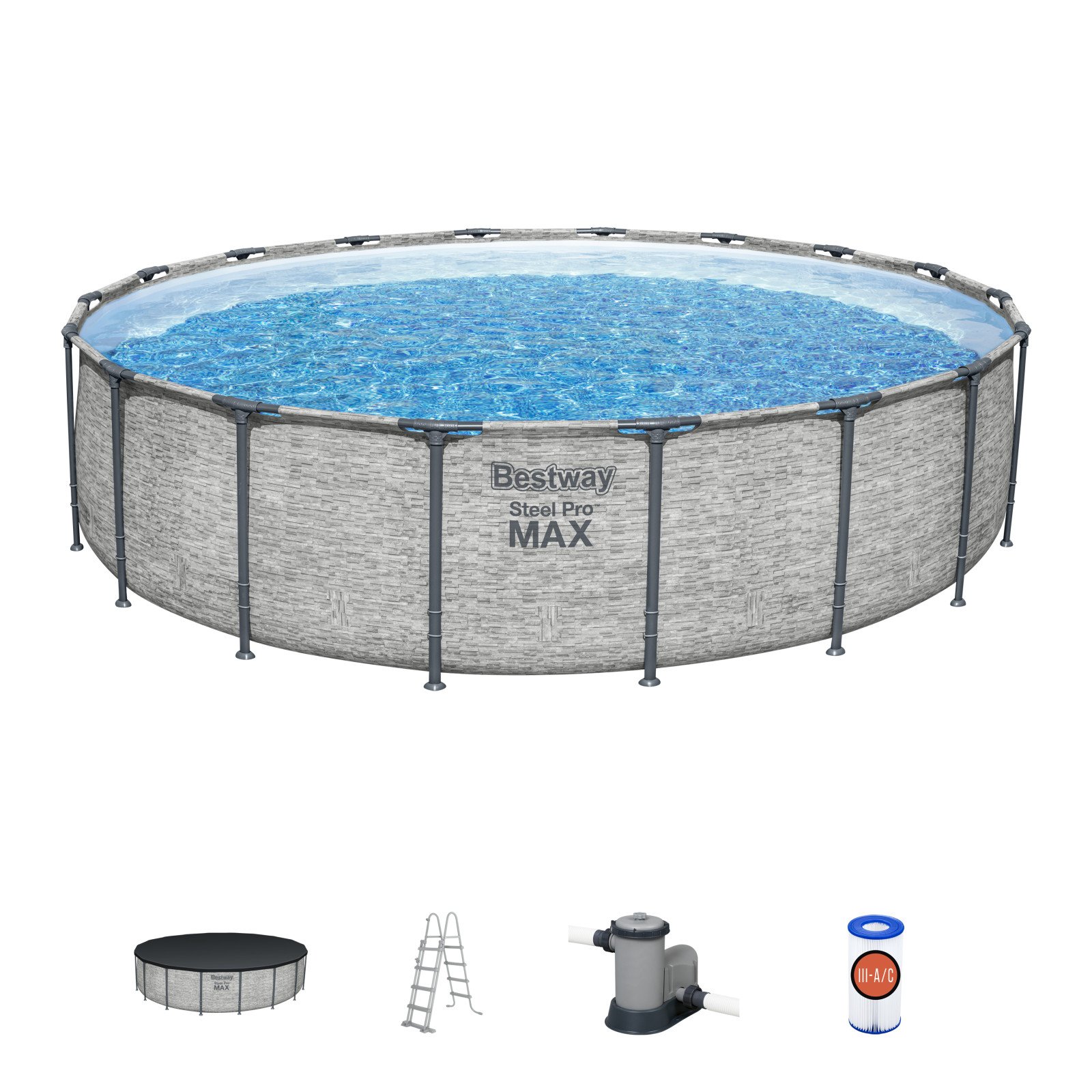 Bassenget har filtreringspumpe som filtrerer vannet for urenheter. Om du ønsker enda bedre rensesystem kan du kjøpe og bytte ut papirfilterpumpen som medfølger med sandfilterpumpe som renser vannet gjennom sand i stedenfor papirfilter.