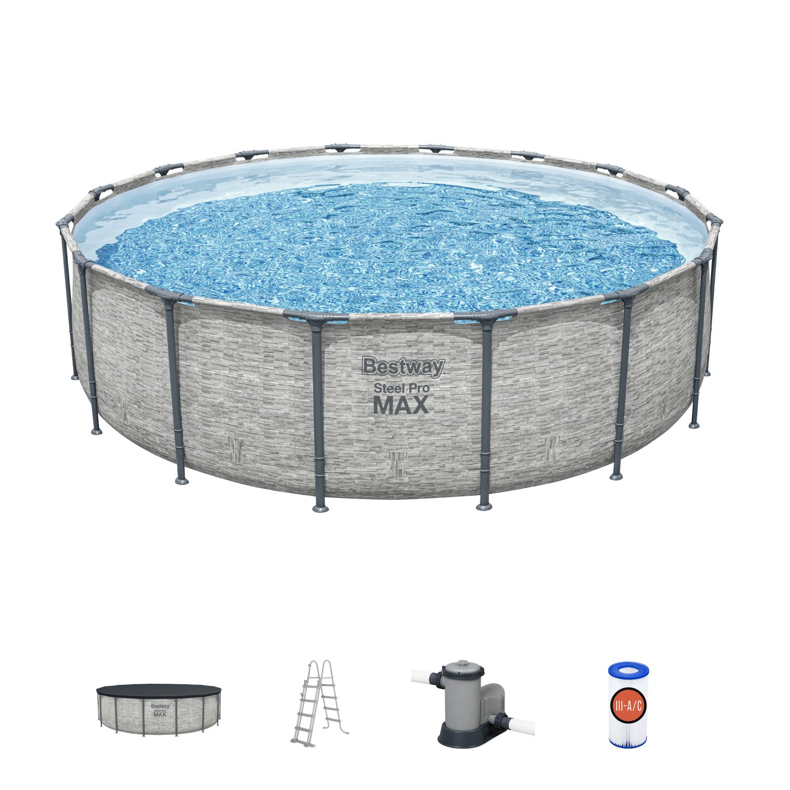 Bassenget har filtreringspumpe som filtrerer vannet for urenheter. Om du ønsker enda bedre rensesystem kan du kjøpe og bytte ut papirfilterpumpen som medfølger med sandfilterpumpe som renser vannet gjennom sand i stedenfor papirfilter.