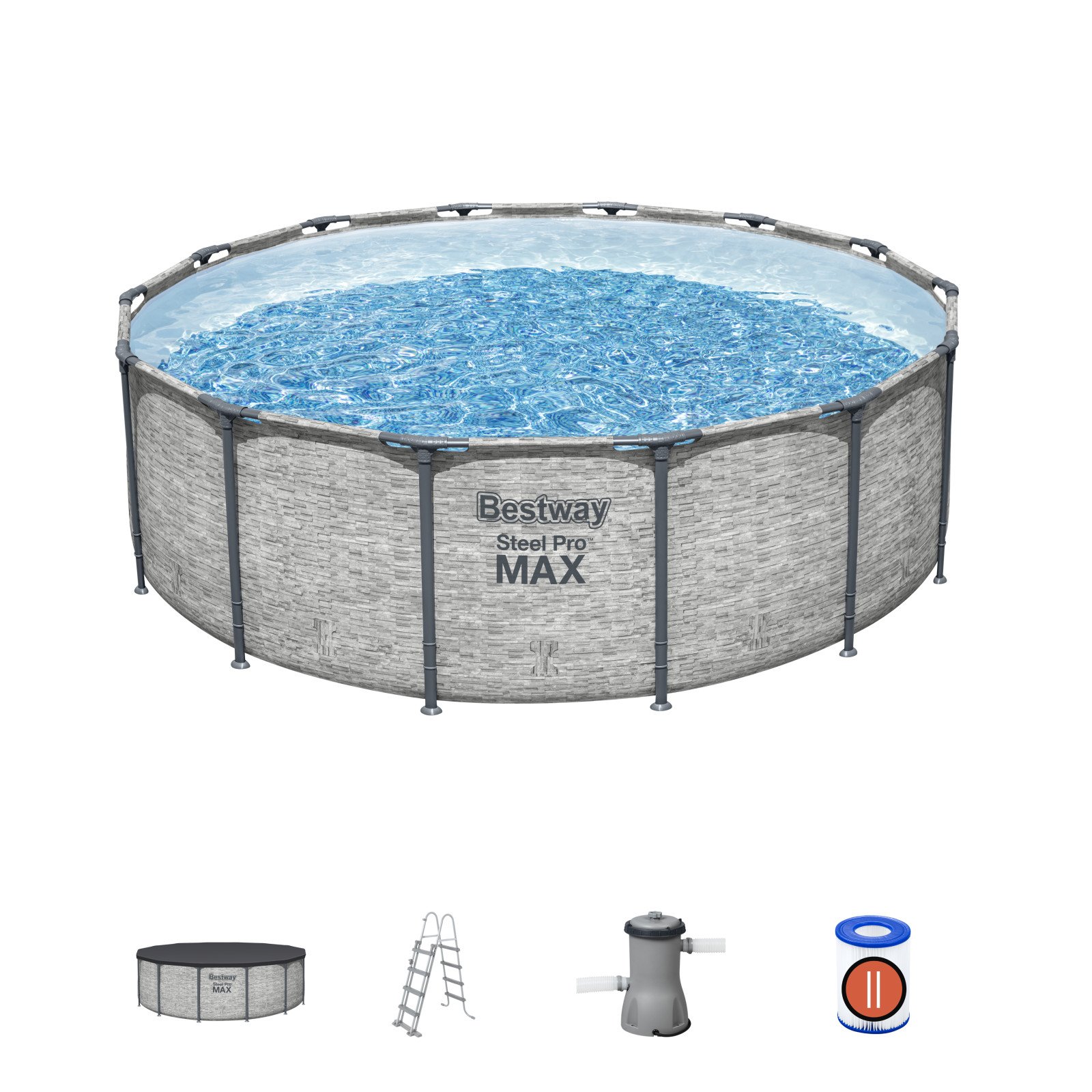 Bassenget har filtreringspumpe som filtrerer vannet for urenheter. Om du ønsker enda bedre rensesystem kan du kjøpe og bytte ut papirfilterpumpen som medfølger med sandfilterpumpe som renser vannet gjennom sand i stedenfor papirfilter.